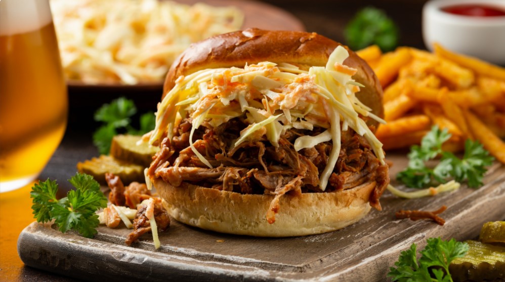 Nezařazené AKCE TOHOTO TÝDNE 30 Bře Burger s trhaným masem + hranolky………………. 159,- (sladko-pikantní omáčka, cheddar, trhané maso 130g, hranolky 200g) Alergen: 1,3,6,7,11